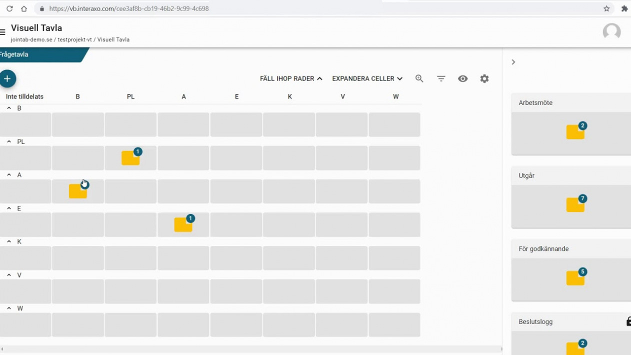 • Digitala post it-lappar ger projektdeltagarna översikt över aktuella